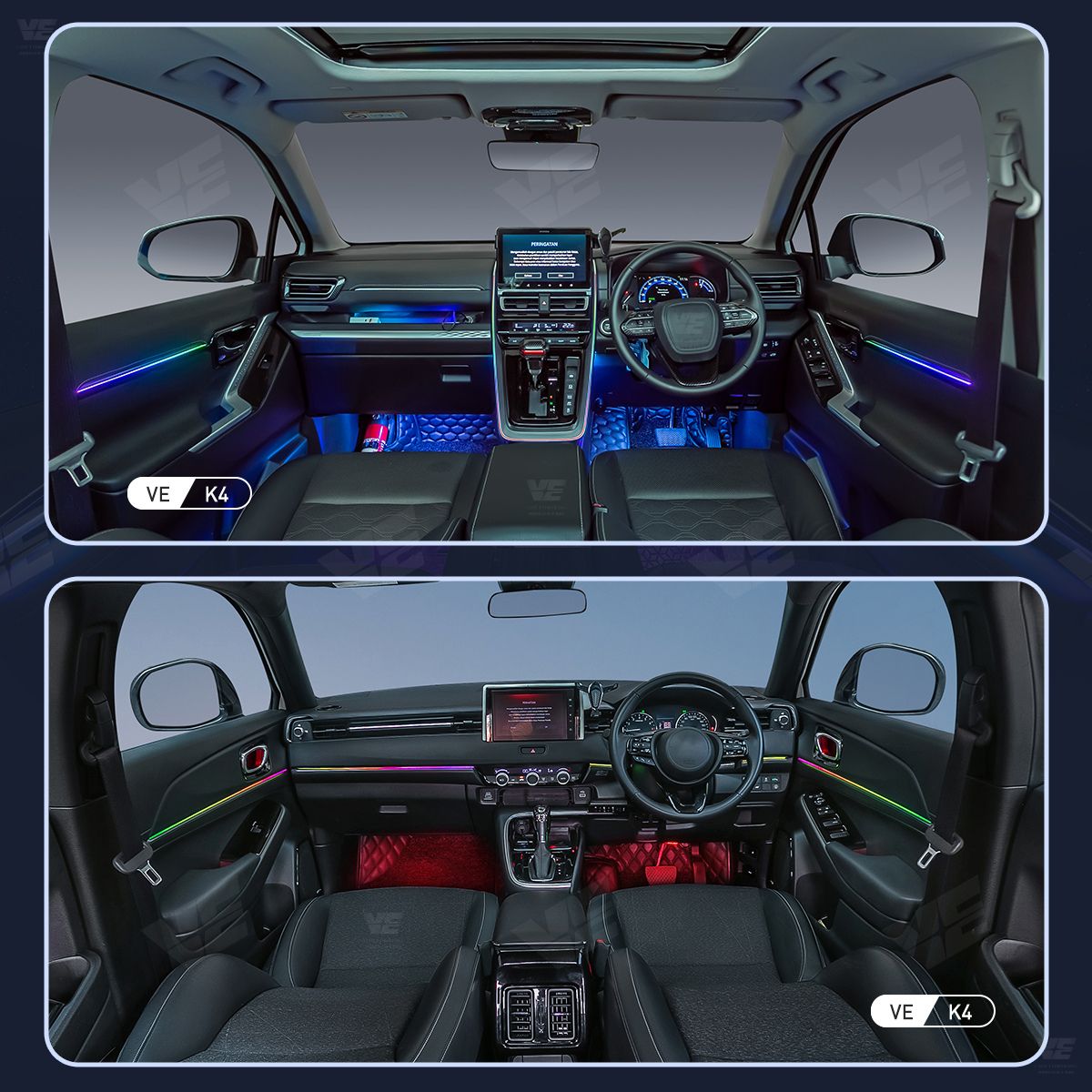 Our ambient lights are customized for specific car models, and the components are not interchangeable between different styles. Each style is only suitable for a specific car model. You can check the product details page for compatibility information, and please note that the car model year may also affect compatibility. If in doubt, feel free to contact us for confirmation.