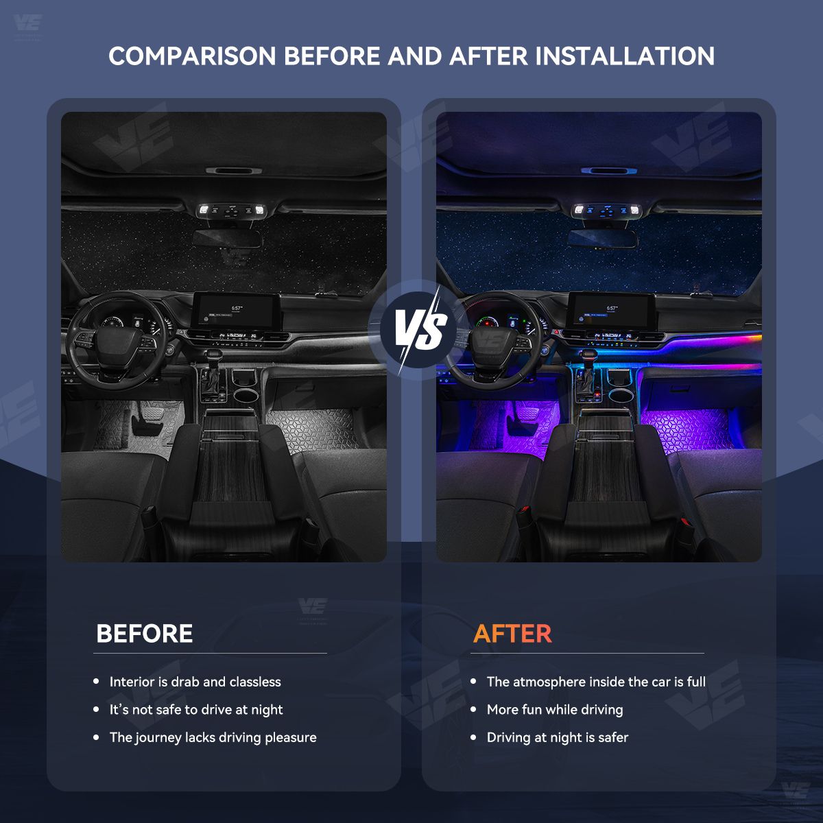 Our ambient lights use exclusive technology to ensure the best effect and user experience. To ensure quality installation and avoid damage, we recommend having the lights installed at our store or with our partners. If you choose to install them yourself, we provide detailed installation guides to help you complete the process easily.